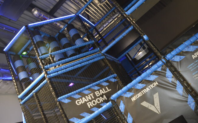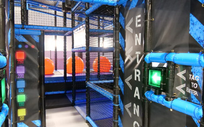 All this takes place within an arena, which is made up of a complex structure of inter-connected, but separate activity areas. Each separate area contains unique challenges that require you to use both physical and mental agility in order to collect the maximum possible number of points allocated 15-minute game time. Most will play three 15-minute games during one session.